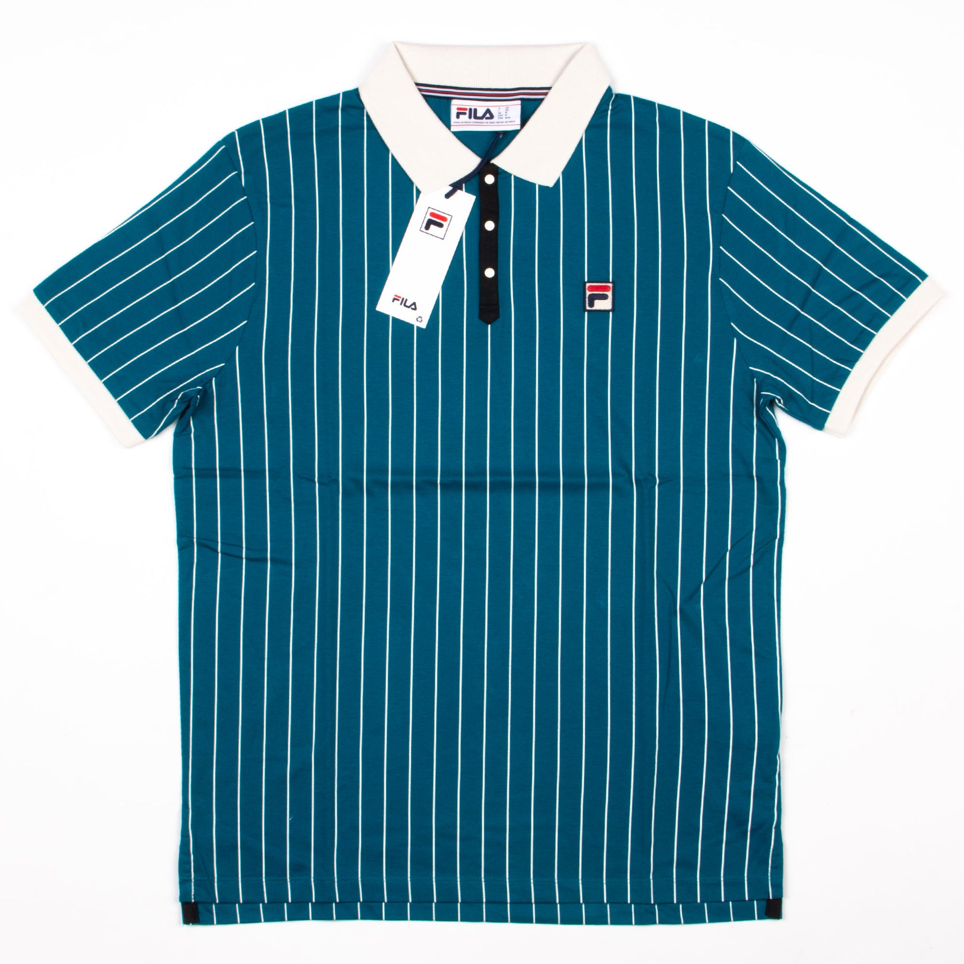 FILA BB1 Striped Polo in Deep Lagoon/Gardenia/Black