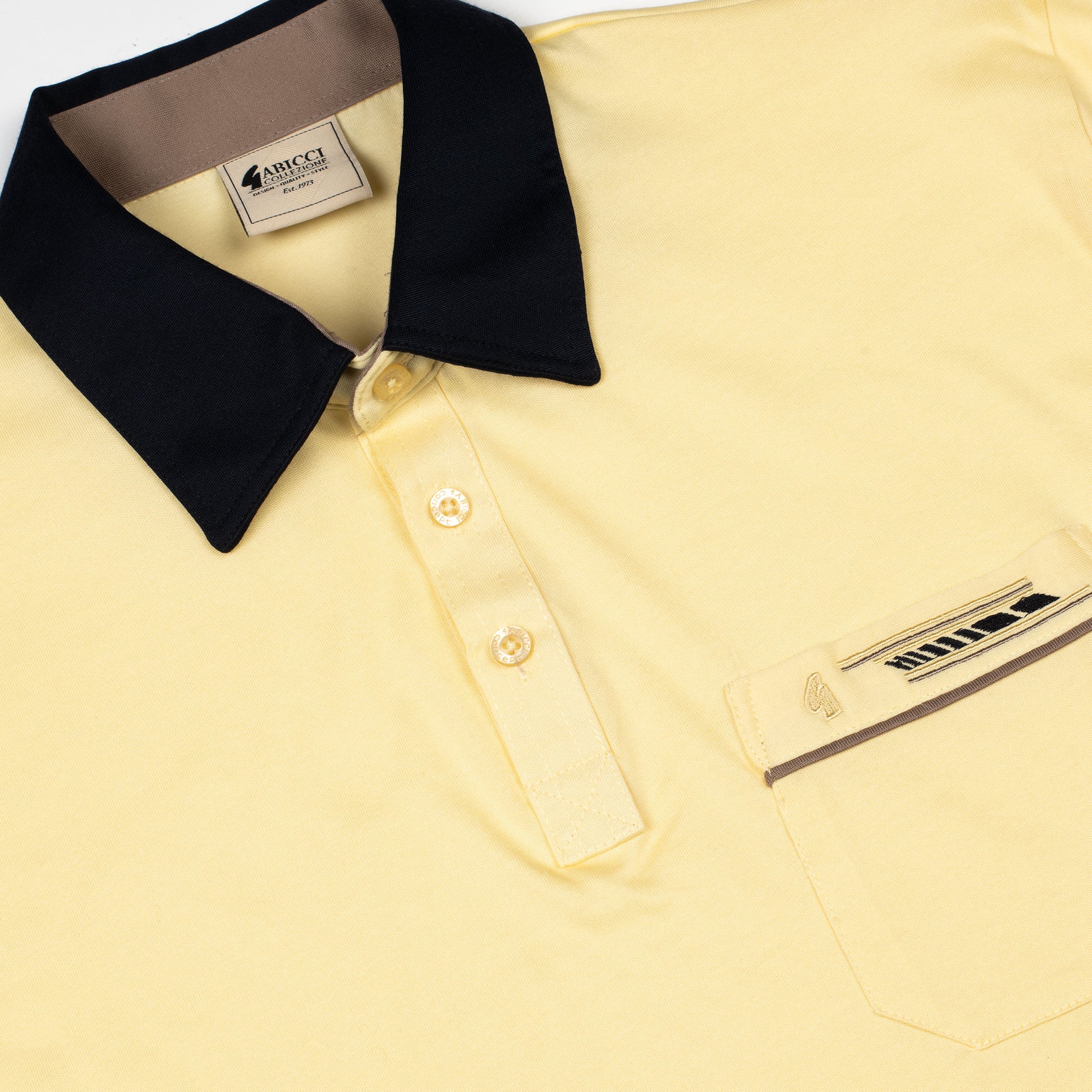 Bringing sunshine swagger to classic casualwear, the Corn Flyer from the Carlo Selection is pure 80s soul in a polo. With its buttery yellow tone and contrast black collar and cuffs, it’s got that vintage football energy with a clean, modern twist.